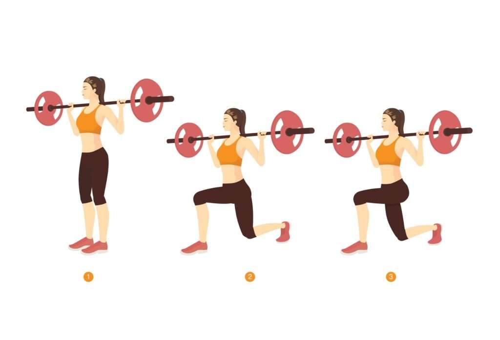 Weighted LungesHips and Lower Legs. Great for balance and single-leg loading.